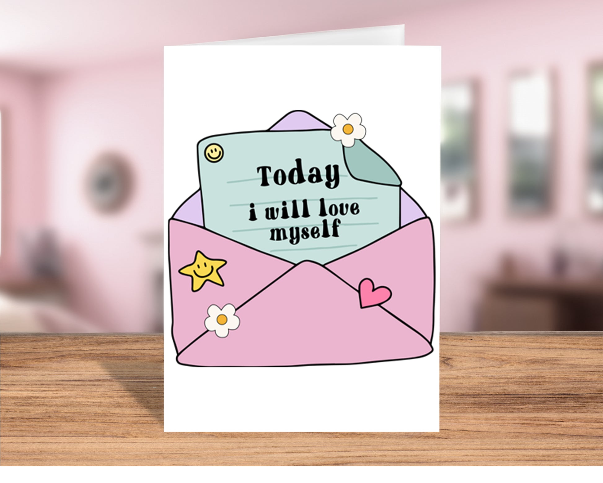 Inspirational "Today, I Will Love Myself" Greeting Card.