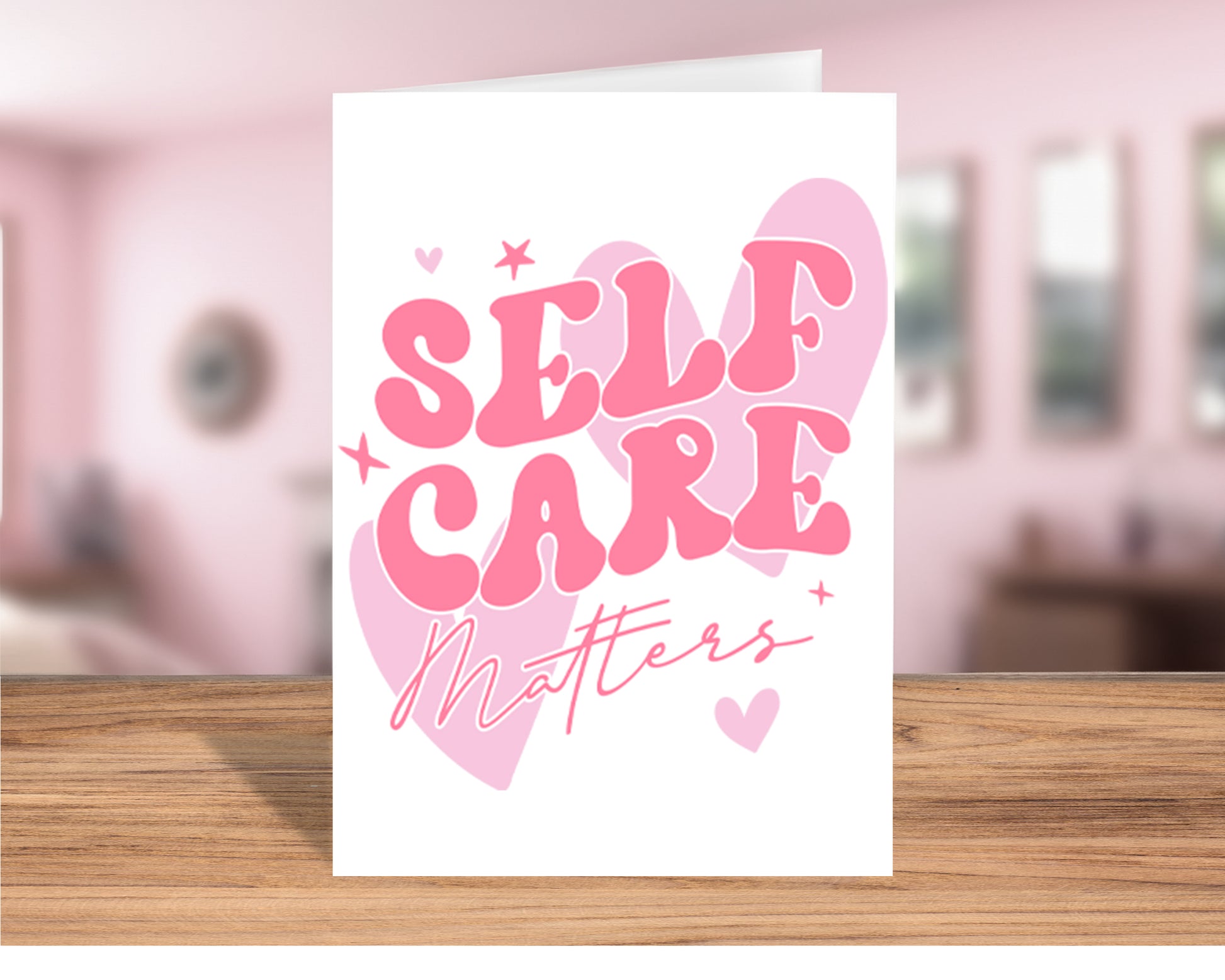 Remind someone special to prioritize their well-being with our "Self-Care Matters" greeting card. Perfect for a boyfriend, girlfriend, mentor, or anyone on a journey of self-love and healing, this card is a thoughtful way to show your support. Whether it’s for Valentine’s Day, a recovery card, or a meaningful gift for her or him, this unique design emphasizes the importance of self-compassion and care. Share an inspirational message that encourages taking time to recharge and love oneself with this beautifully crafted support card, perfect for any occasion.