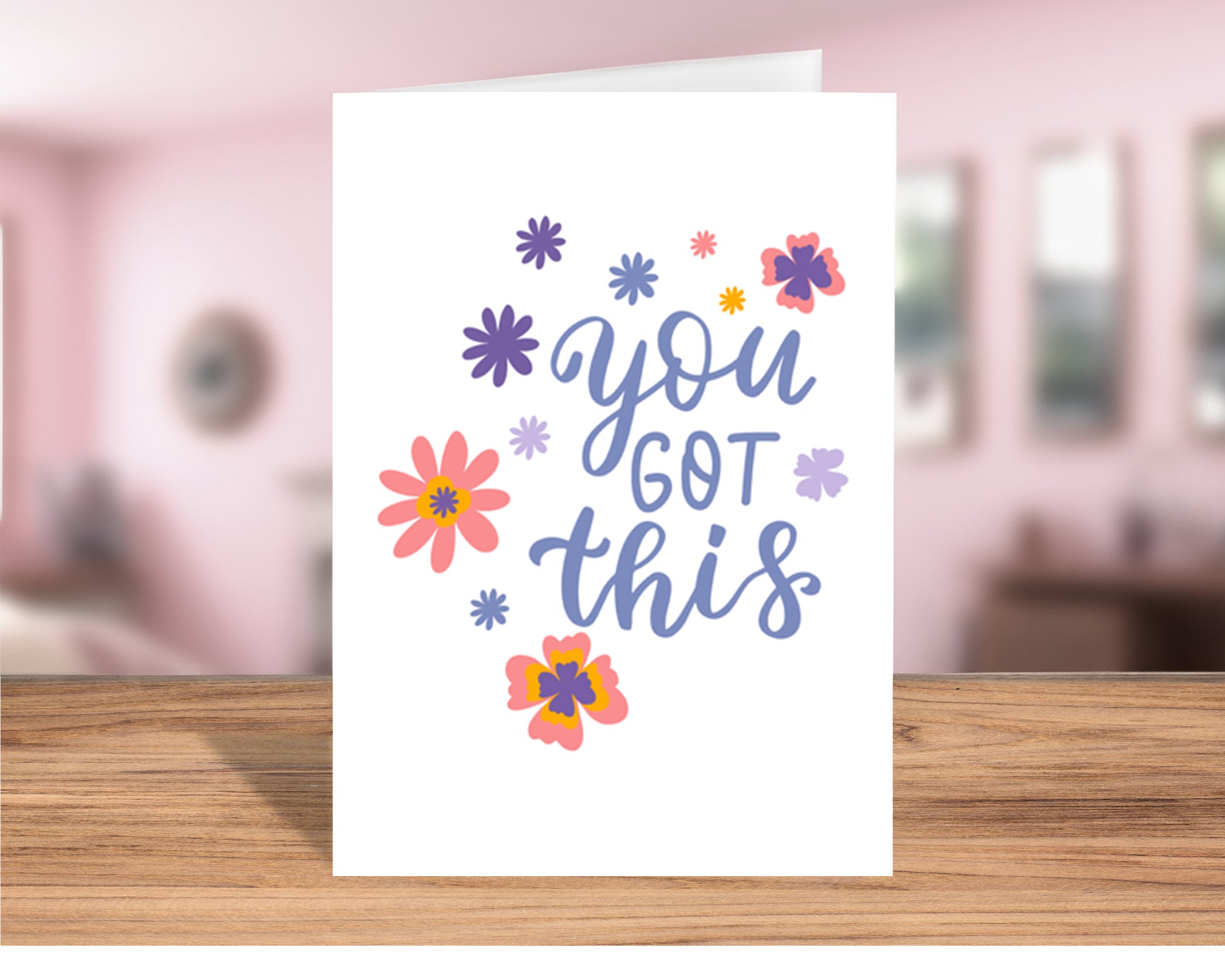 Motivate and uplift someone special with our inspirational "You Got This" greeting card. Perfect for a boyfriend, girlfriend, mentor, or anyone who could use a boost of confidence, this card is a heartfelt reminder of their strength and determination. Whether it’s for Valentine’s Day, a recovery card, or a thoughtful gift for her or him, this unique design inspires self-love and perseverance. Share an encouraging message that offers support and positivity with this beautifully crafted card, which is ideal for helping them confidently tackle any challenge.