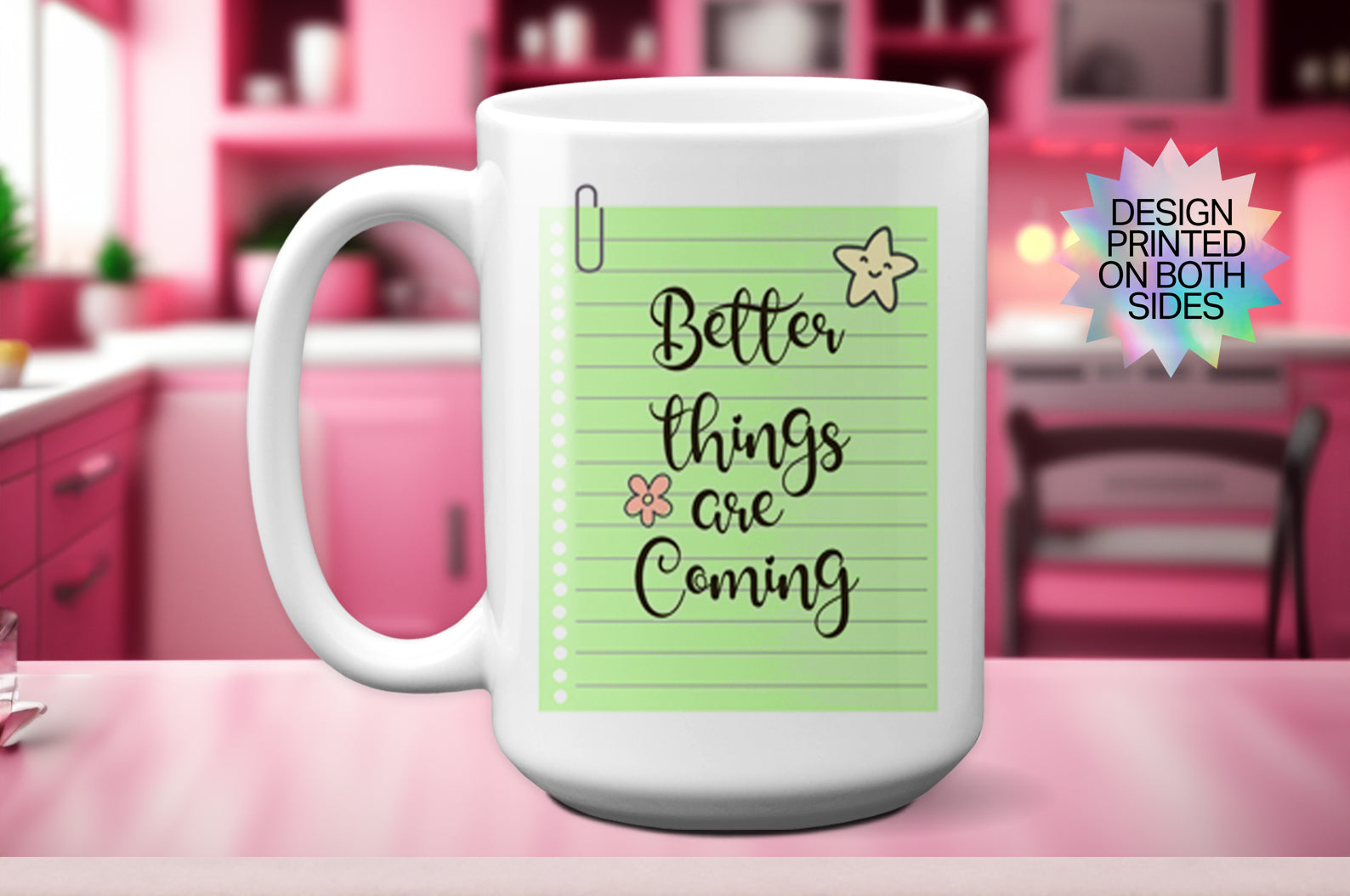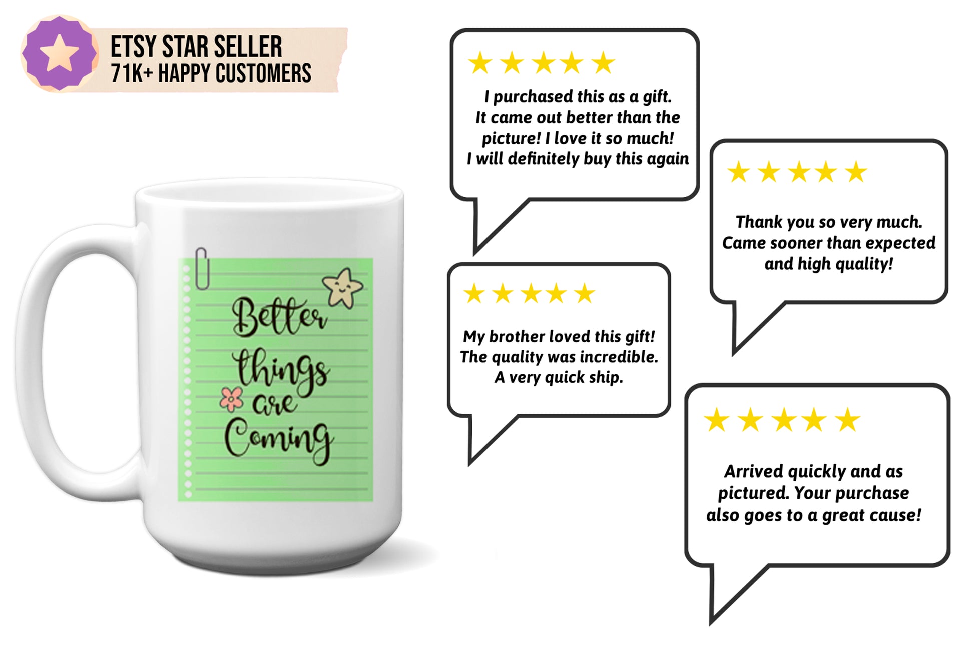 Sublimated on an 11 oz (3.7” H x 3.25”) or 15 oz (4.5" H x 3.4") Ceramic Coffee Mug for vivid and lasting designs.