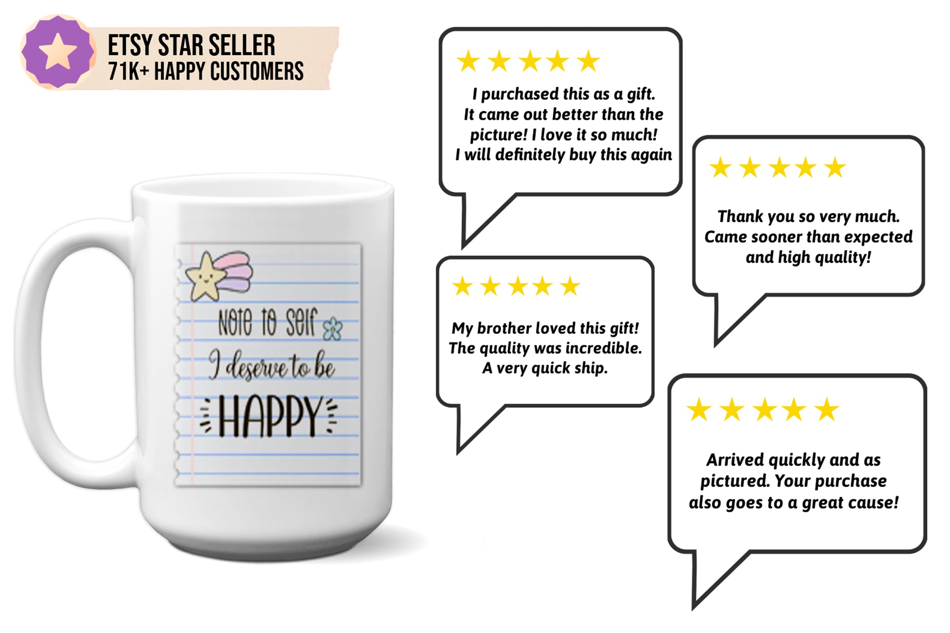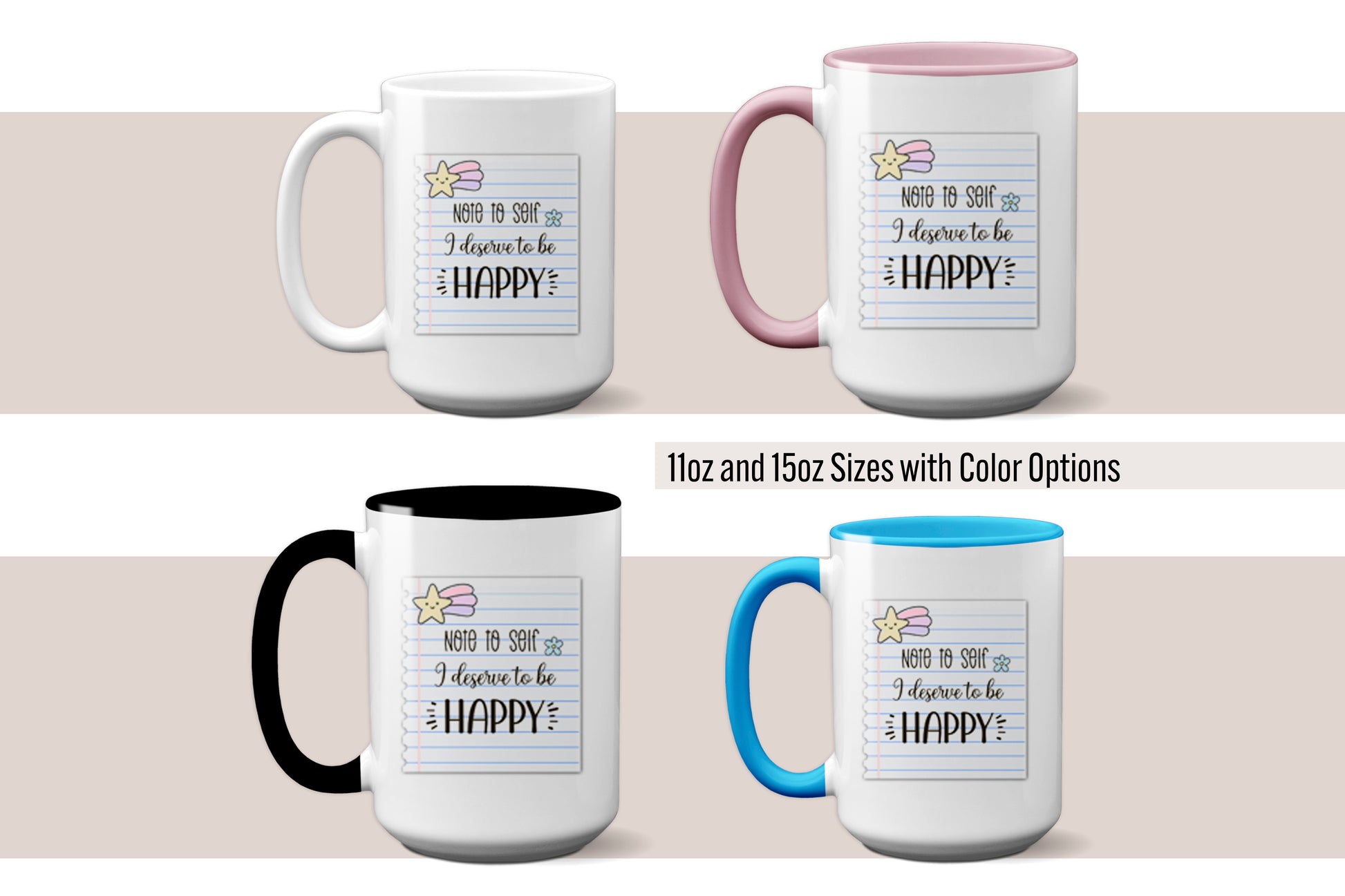 Cute "Note to Self: I Deserve to Be Happy" Mug.