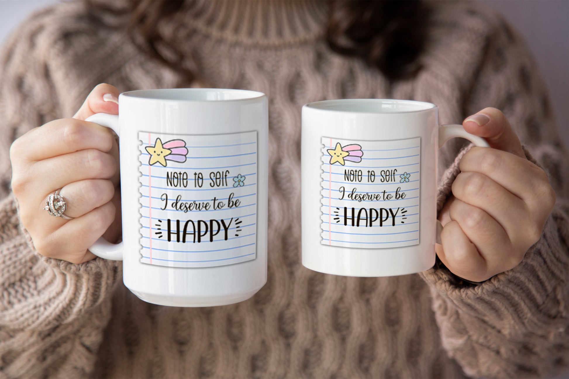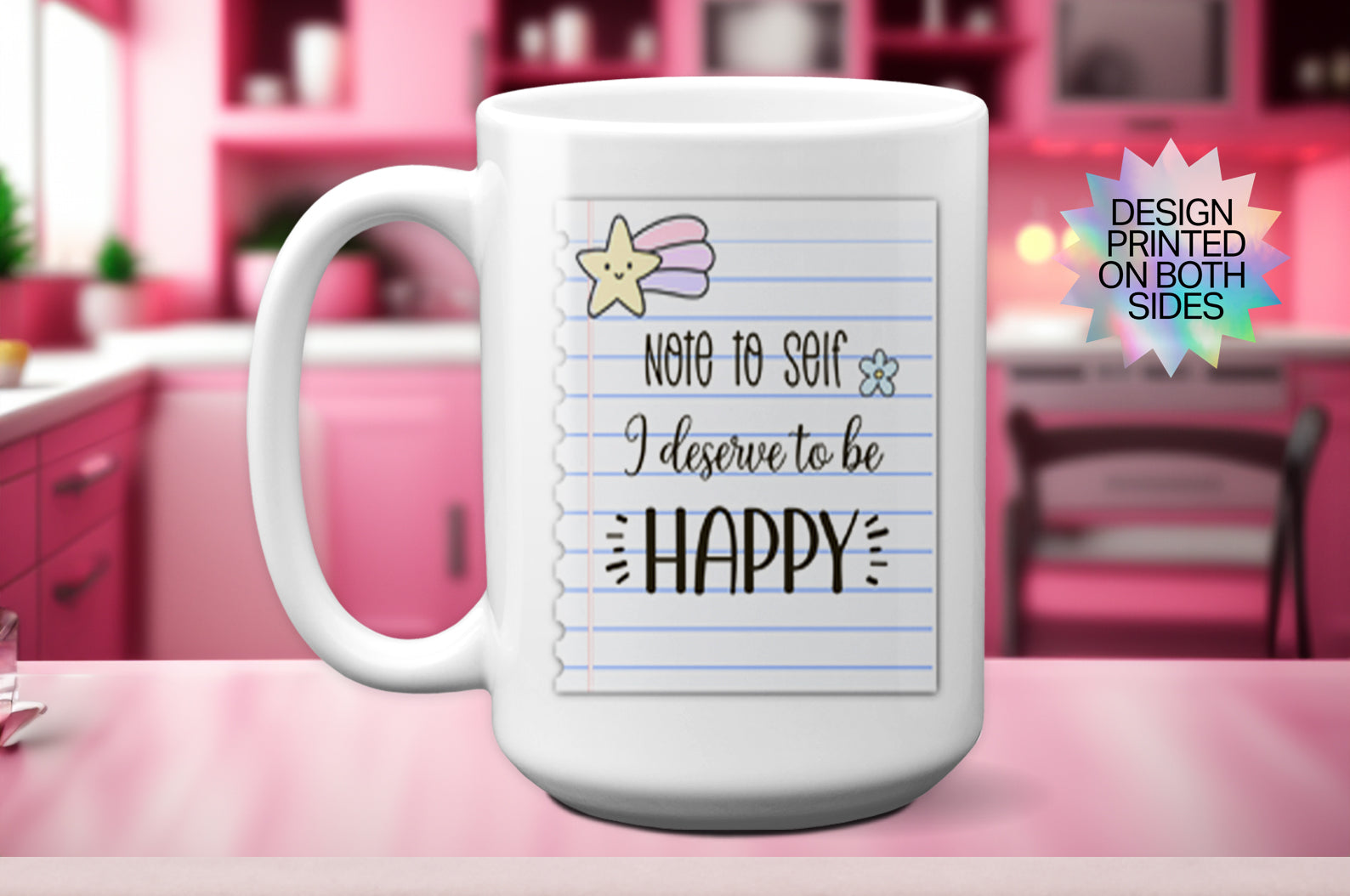 Cute "Note to Self: I Deserve to Be Happy" Mug