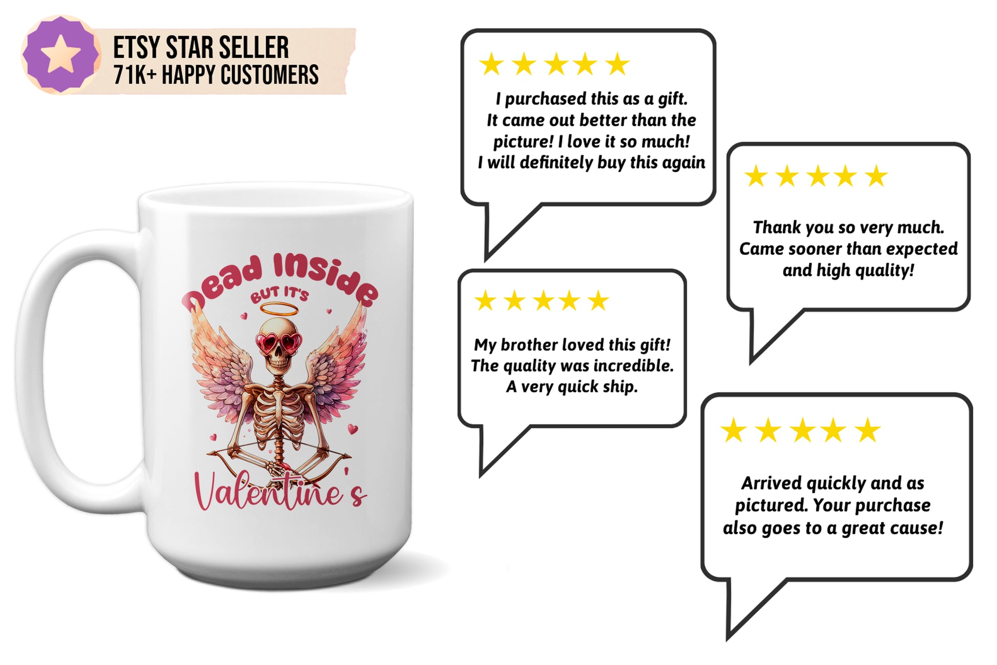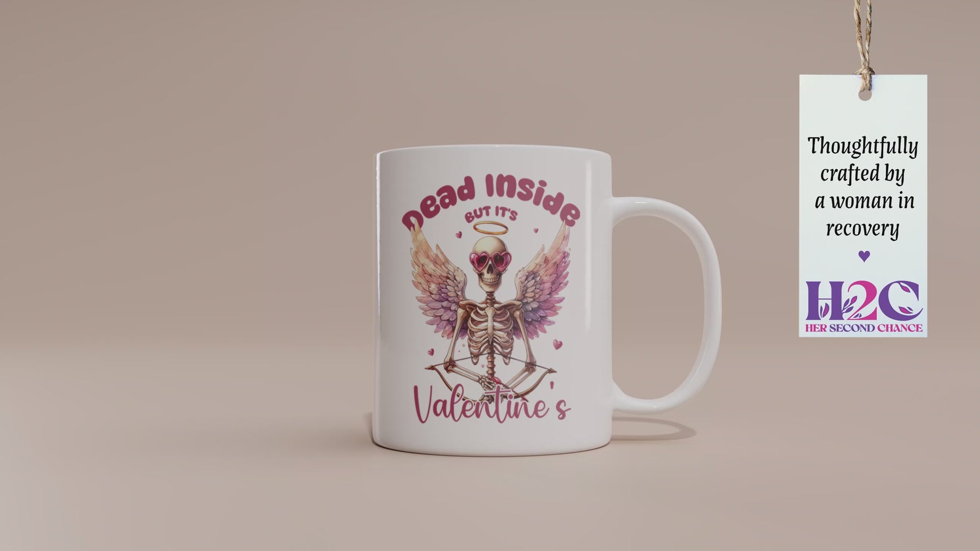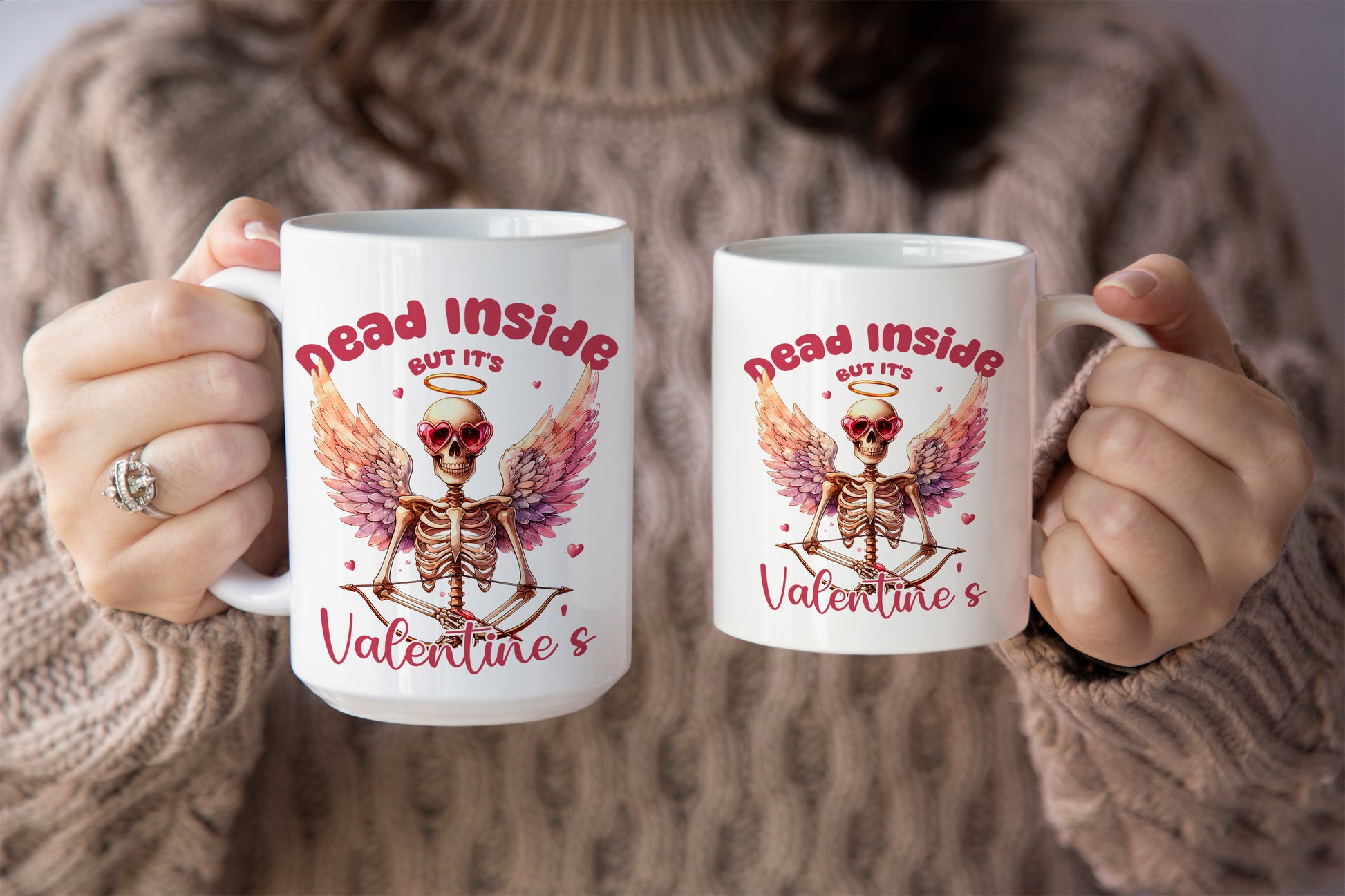 Fun "Dead Inside, But It’s Valentine’s" Skeleton Angel Mug.