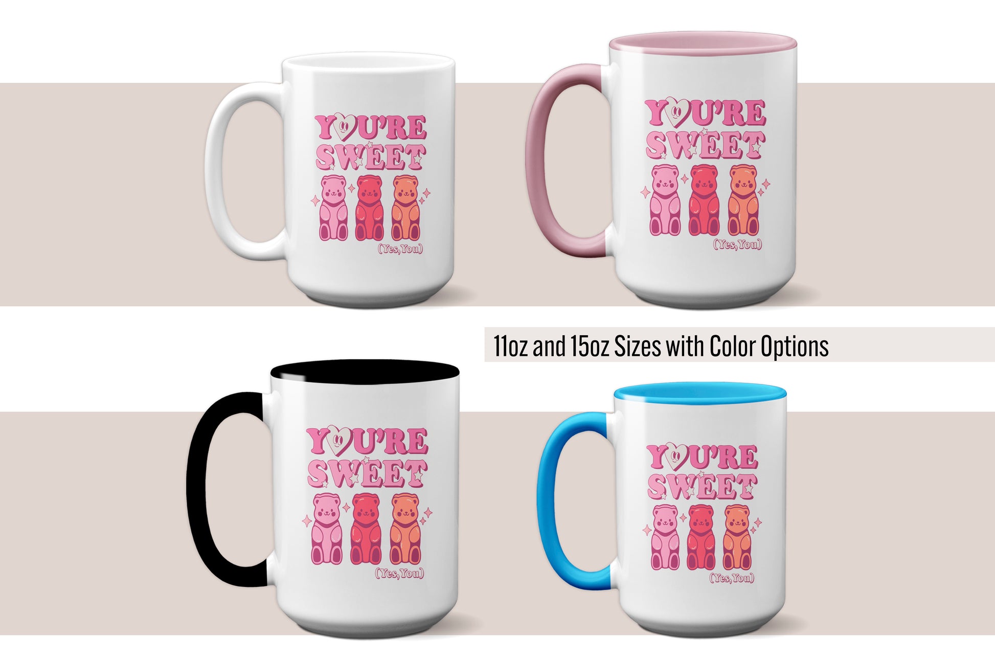 Fun "You're Sweet (Yes, You)" Gummy Bear Valentine's Day Mug