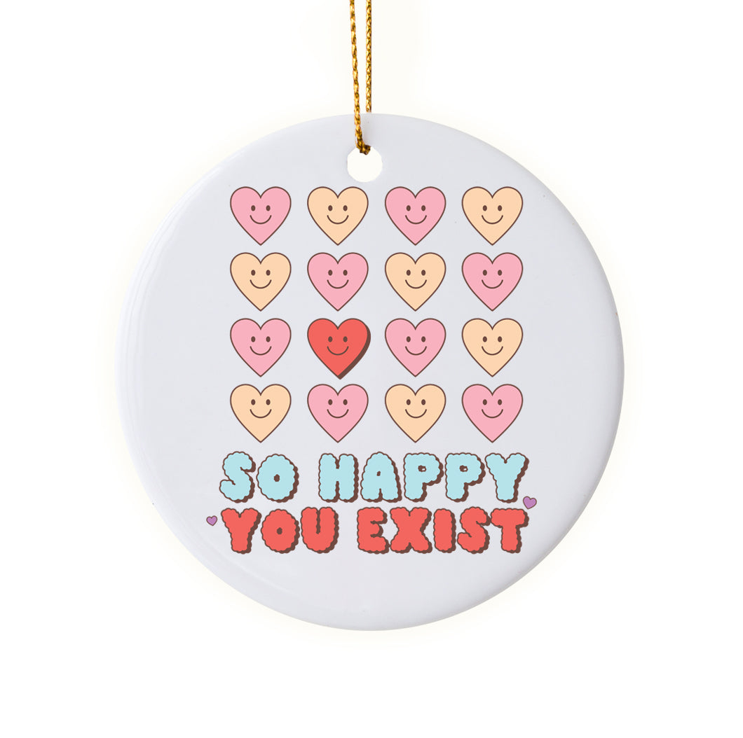 Cute "So Happy You Exist" Holiday Ornament with Hearts.