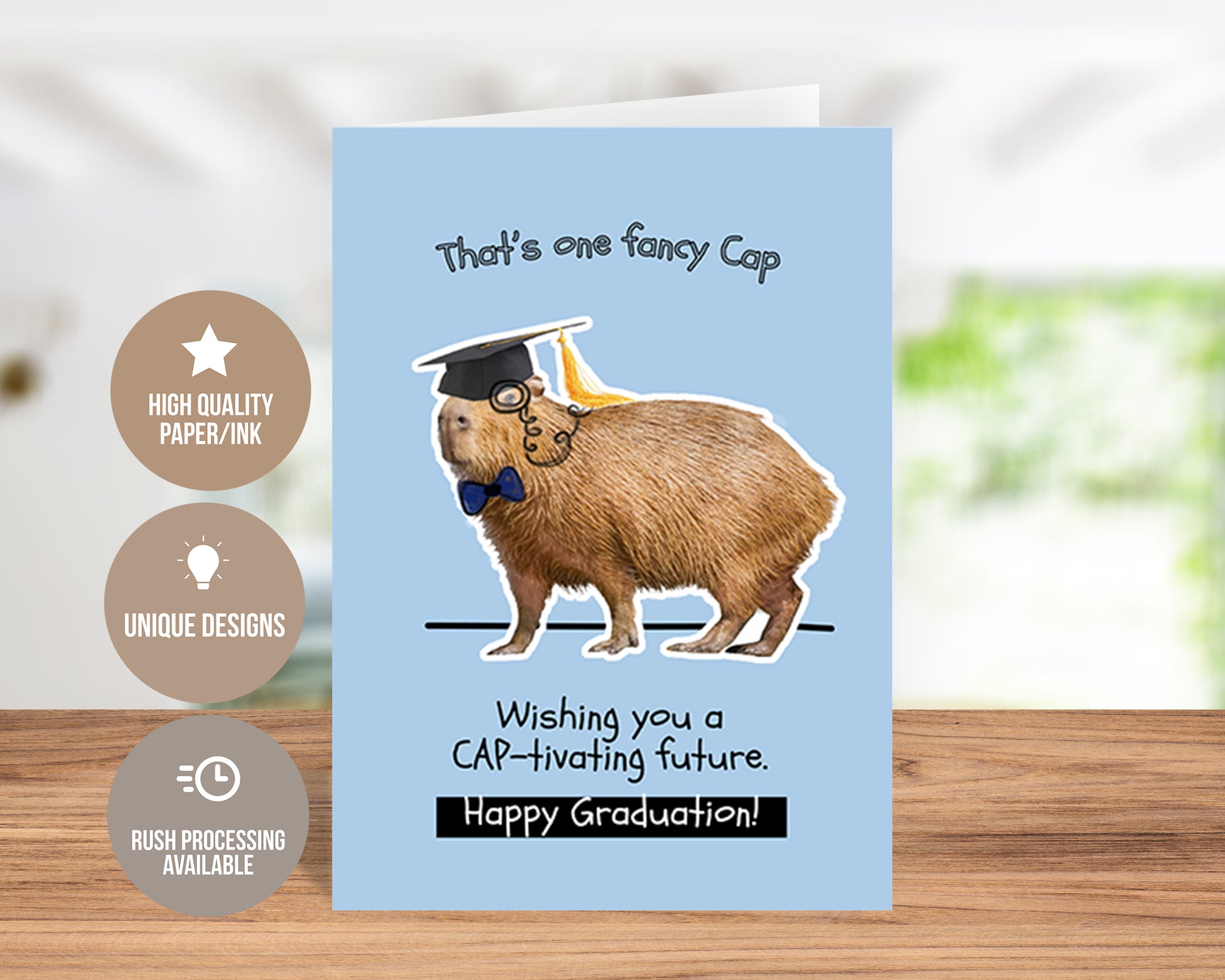Celebrate the milestone of graduation with our traditional graduation card, "That's One Fancy Cap – Happy Graduation." This graduation card is crafted with care from premium cardstock and features a timeless design that blends elegance with a playful spirit.