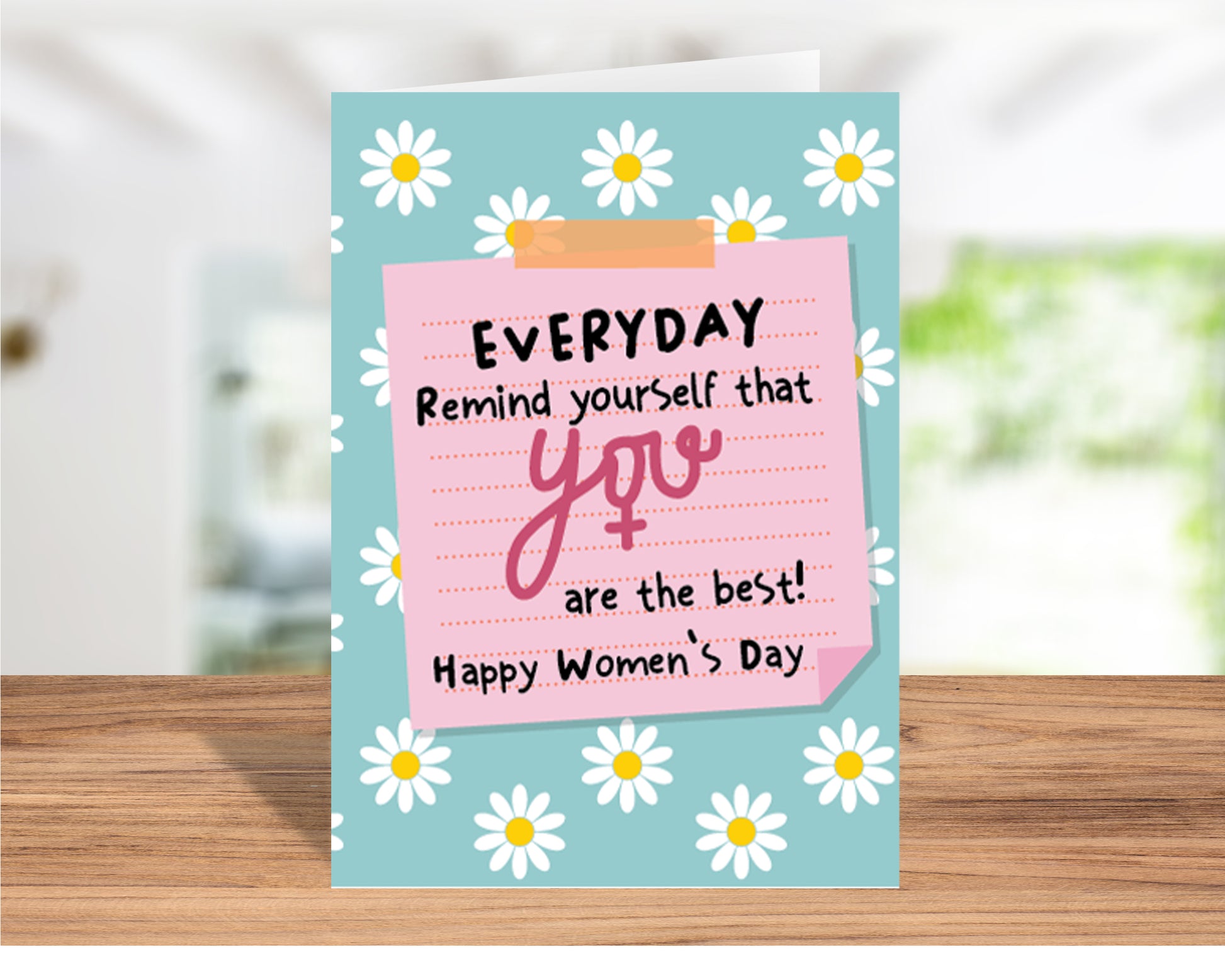 Celebrate the incredible women in your life with our Happy Women's Day Greeting Card—the perfect way to show appreciation. Our You Are The Best Card is designed to remind every woman of her strength, resilience, and greatness. Whether it's a friend, sister, mother, or colleague, let this uplifting Women's Day card inspire and uplift them to embrace their inner power and celebrate their achievements. Give a motivational card for women that spreads love and encouragement.